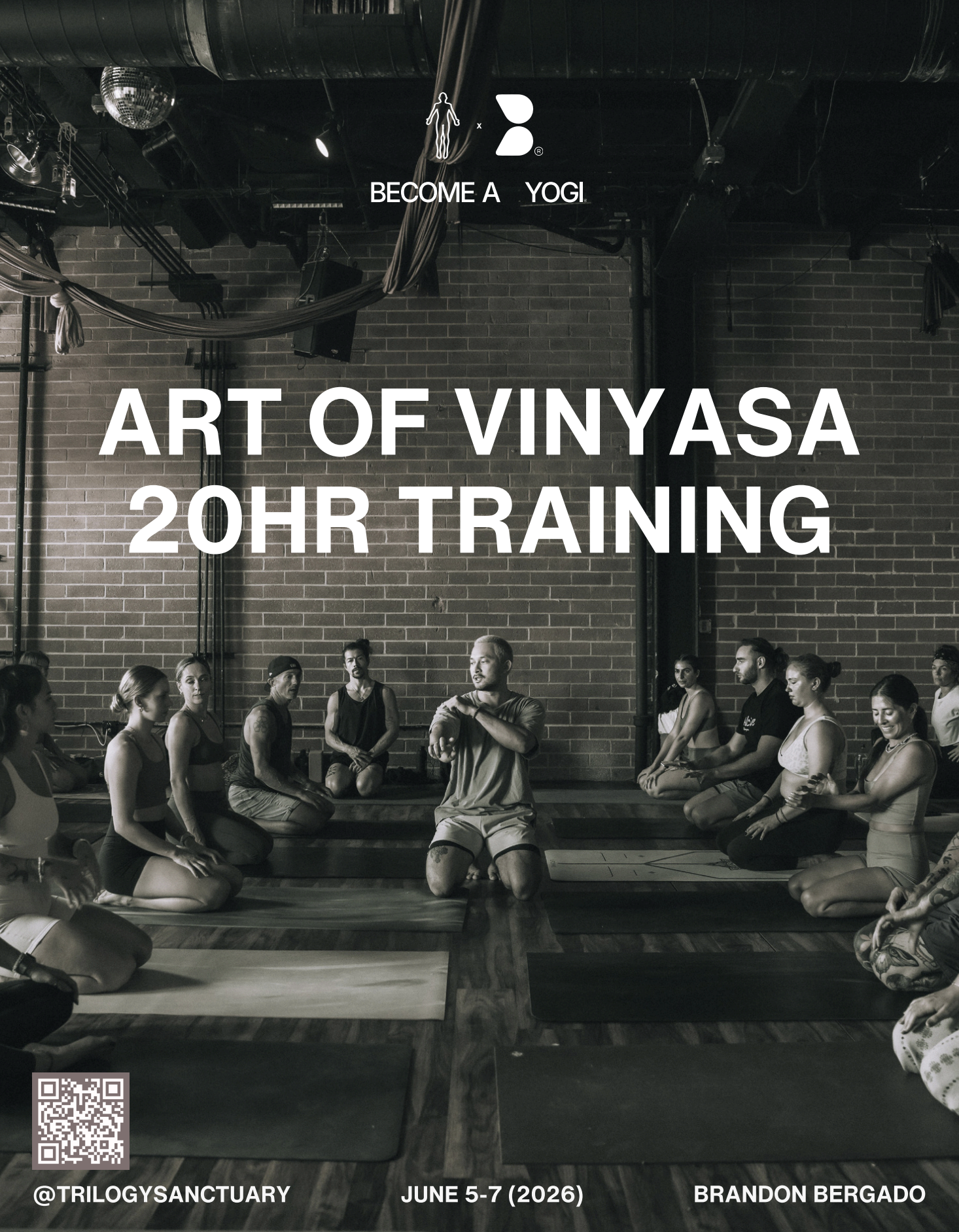 Spend the weekend with Brandon and the becomeayogi team where we’ll dive into The Art of Vinyasa, A Creative Sequencing Workshop, The Science of Breathwork, The Art of Physical Adjustments, Anti-Gravity School: Handstands & Inversions, Cold Plunging, and much more.